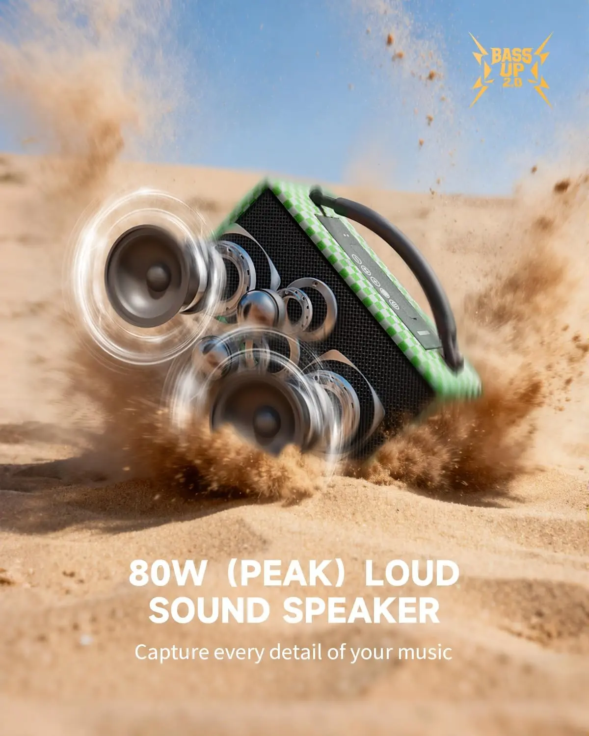 Portable speaker with loud sound enough for family gatherings outdoors.